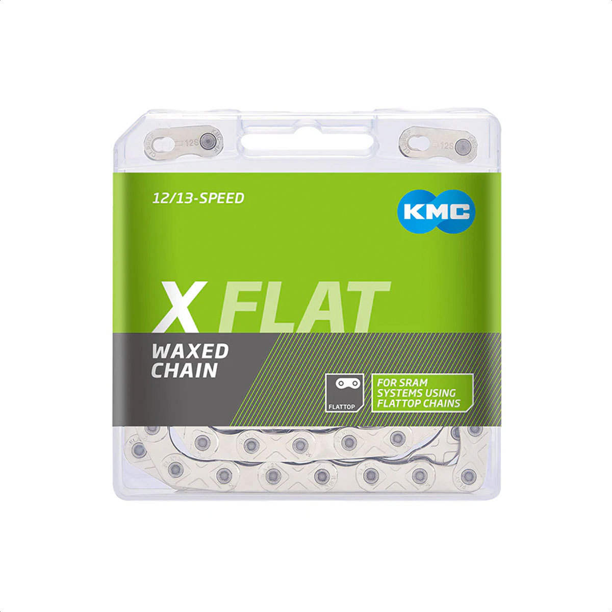 *Las cadenas KMC de perfil plano (FLATTOP) son compatibles exclusivamente con las transmisiones AXS o Transmission/T-Type de 12/13 velocidades de SRAM. No son compatibles con otros sistemas de 12/13 velocidades ni con grupos SRAM más antiguos.