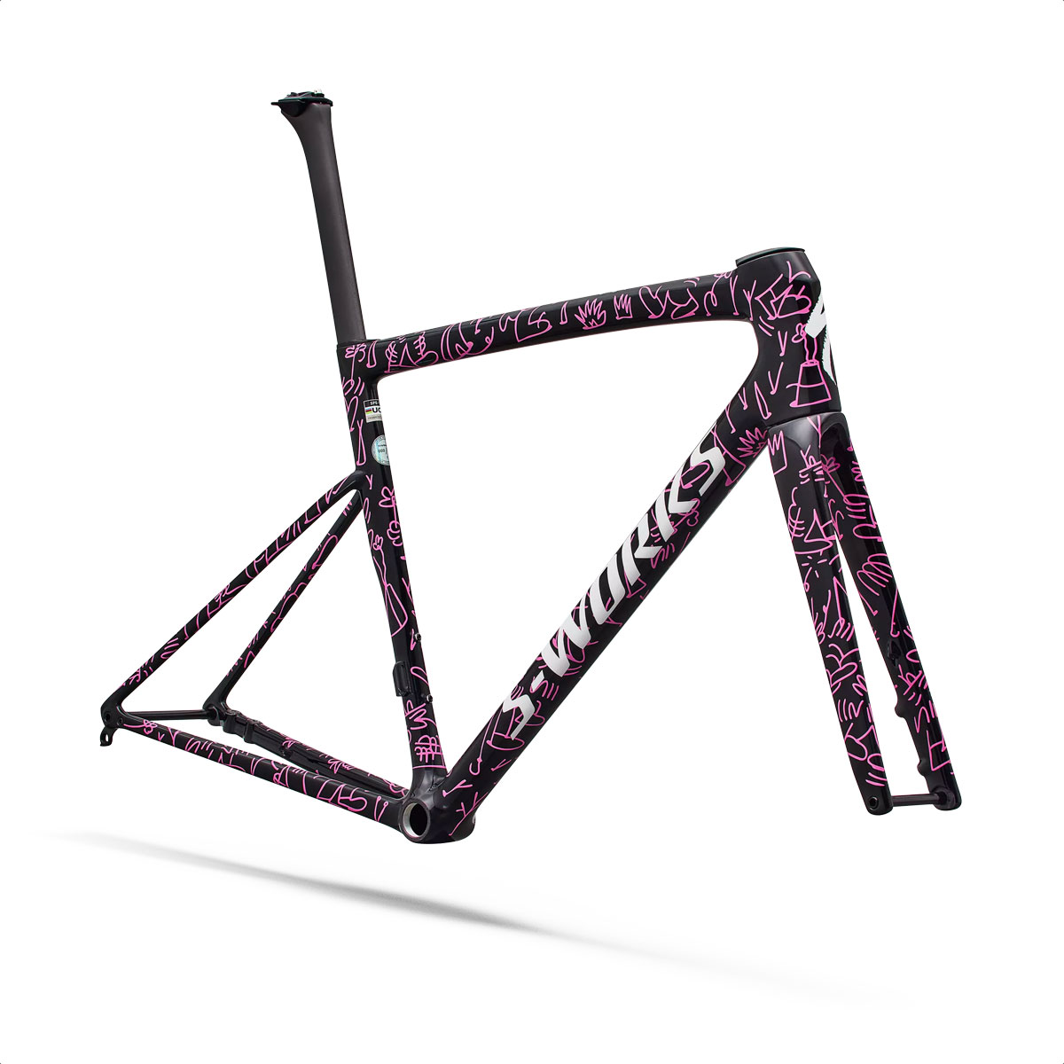 Utilice el cuadro Lucas Beaufort LTD S-Works Tarmac. La S-Works Tarmac SL8: la bicicleta de competición más rápida del mundo. Una bicicleta para dominarlas a todas. Ahora renace en una edición limitada creada junto al artista Lucas Beaufort. Diseñado a partir de la vida, la experiencia y el impulso de seguir su propio camino, este cuadro revela capas ocultas que cada espectador puede interpretar a su manera. Es una invitación a pedalear con curiosidad y apertura mental. A buscar aventuras, compartir alegría y llevar esperanza allá donde lo lleve el camino.